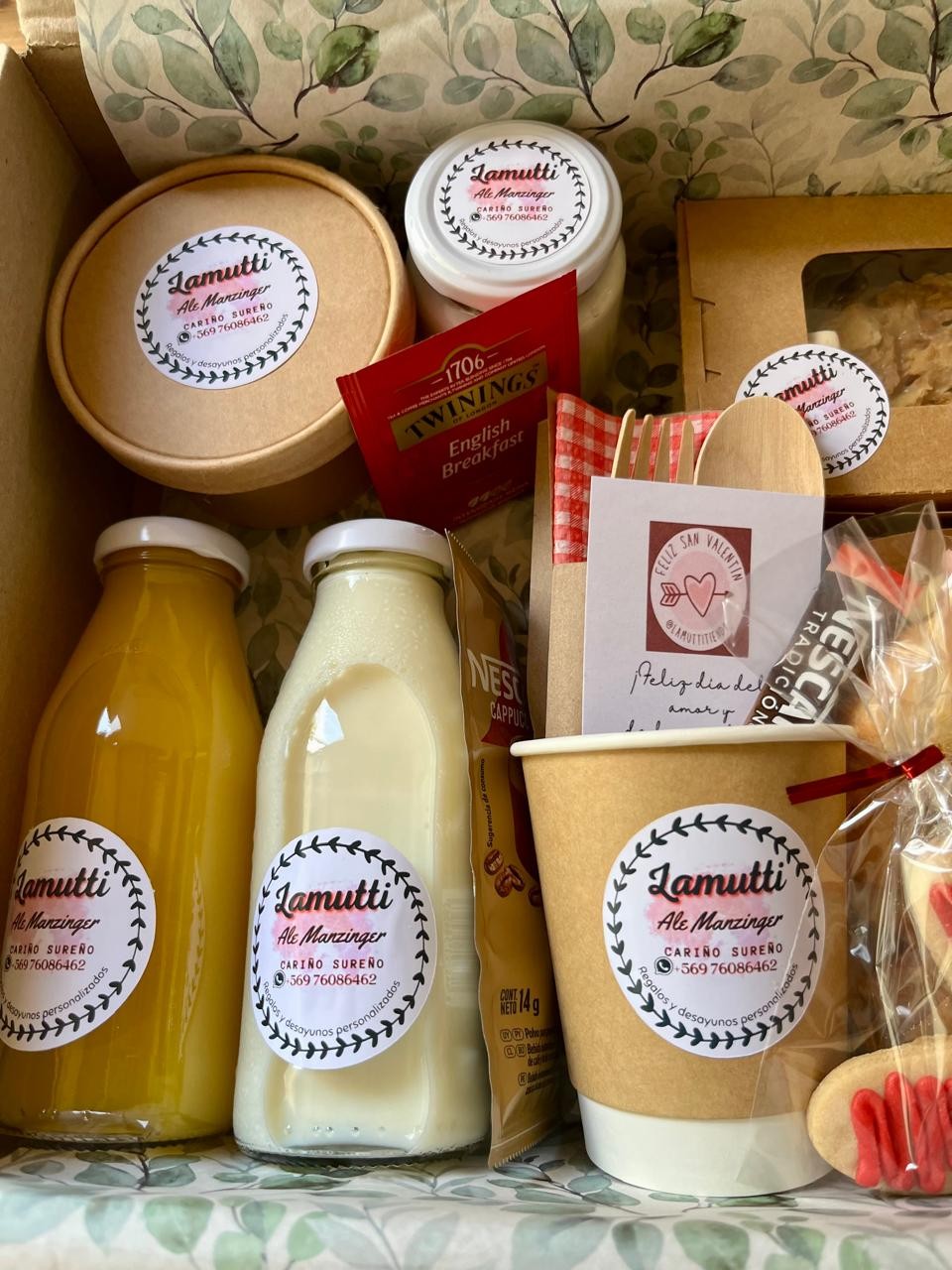 Cada producto va en un envase cuidadosamente presentado y cerrado para que todo llegue fresco y listo para disfrutar.
